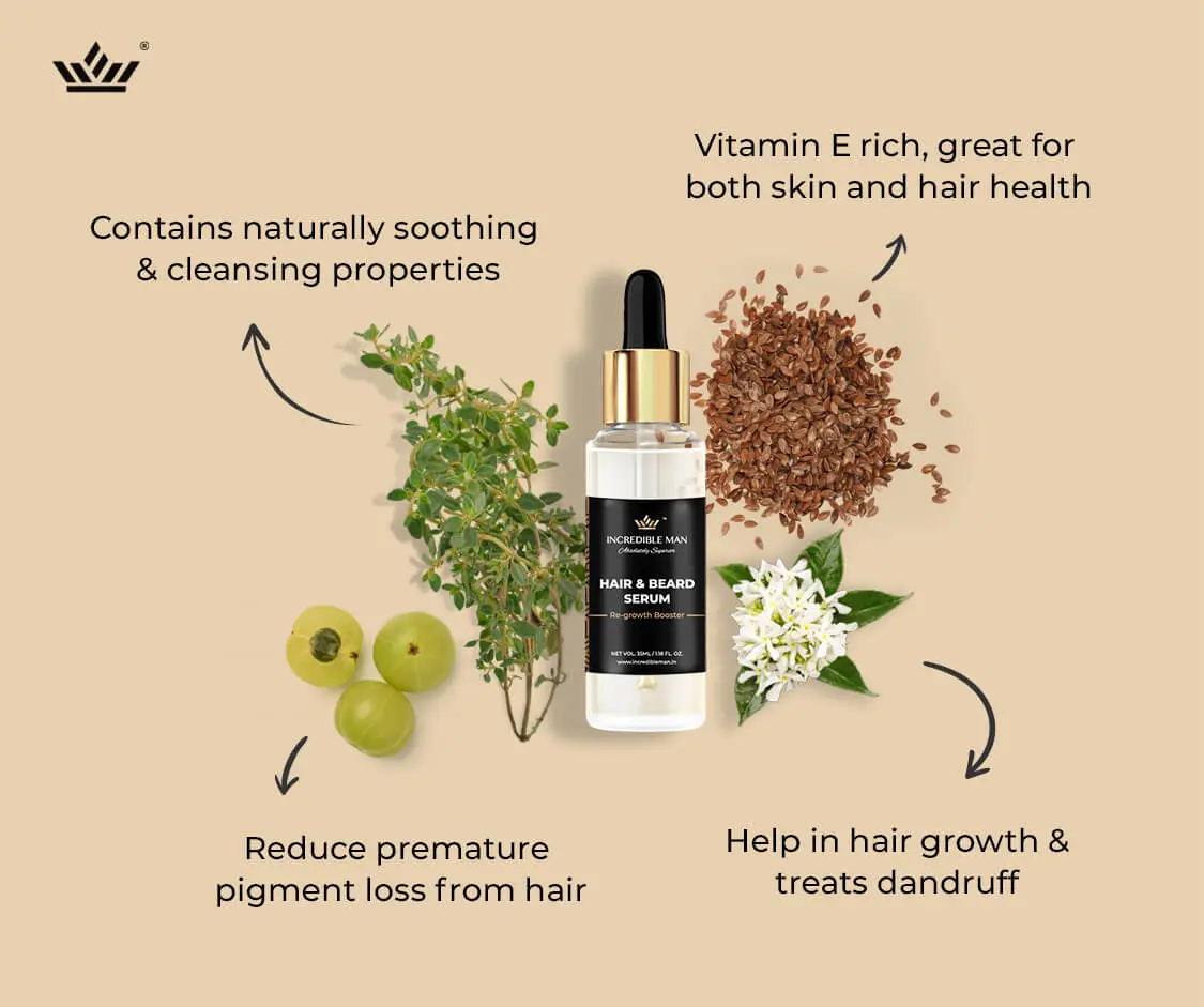 Our Beard Growth Serum, enriched with the goodness of amla, neroli, rendensyl, and flaxseed, is a potent formula designed to stimulate beard growth and enhance its overall health. Amla nourishes the hair follicles, while neroli provides a refreshing scent. Rendensyl, a breakthrough ingredient, promotes hair density and thickness. The inclusion of flaxseed ensures essential nutrients and hydration for optimal beard growth. Unlock your beard's potential with this unique blend and enjoy a fuller, healthier, and more impressive beard.